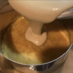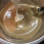 甜菜糖とクリームチーズを湯煎しながら混ぜる